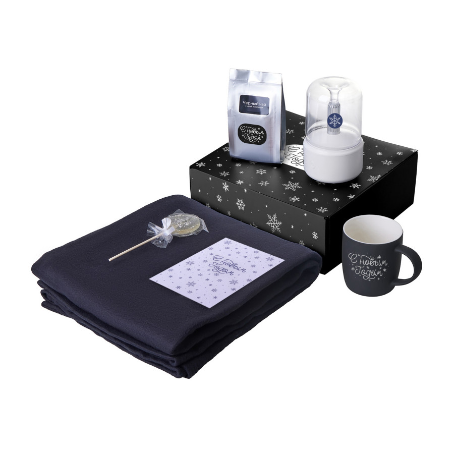 Подарочный набор с пледом, увлажнителем и кружкой, черный