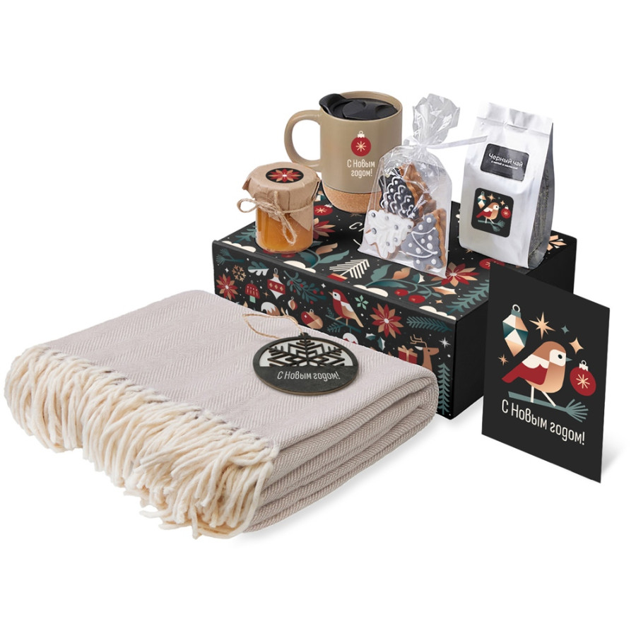 | Материал: | плед - 100% хлопок; кружка - керамика, пробка; подвеска - дерево; открытка - бумага |