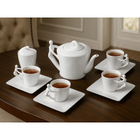Белоснежный цвет и лаконичный дизайн делают сервиз уместным в любом интерьере — от классики до модерна. Комплектность: чайник 800 мл, сахарница, чашка 100 мл- 4шт, блюдце - 4шт