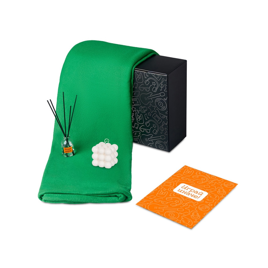 Подарочный набор с пледом, свечой и диффузором, зеленый