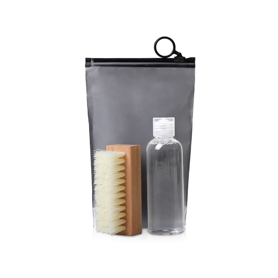 Чистая обувь — за пару минут. Этот компактный набор с очищающей жидкостью и щёткой упакован в удобный пакет с зип-локом, чтобы вы могли ухаживать за обувью где угодно. Идеально для путешествий, офиса и повседневной жизни.