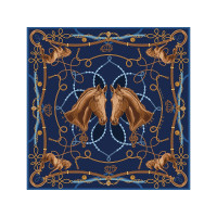 Платок Конный клуб вдохновлен духом русского аристократизма, тесно связанного с традициями верховой езды. Образ лошади, занимающий особое место в изобразительном наследии России, — от древнерусской миниатюры до современных шедевров живописи — ассоциируется с благородством, честью и внутренней силой. Платок воплощает эти возвышенные качества, отраженные в природной эстетике конного экстерьера.