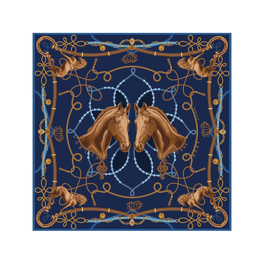 Платок Конный клуб создан брендом Русские в моде совместно с маркой VUA-LYA, производителем одежды и аксессуаров.