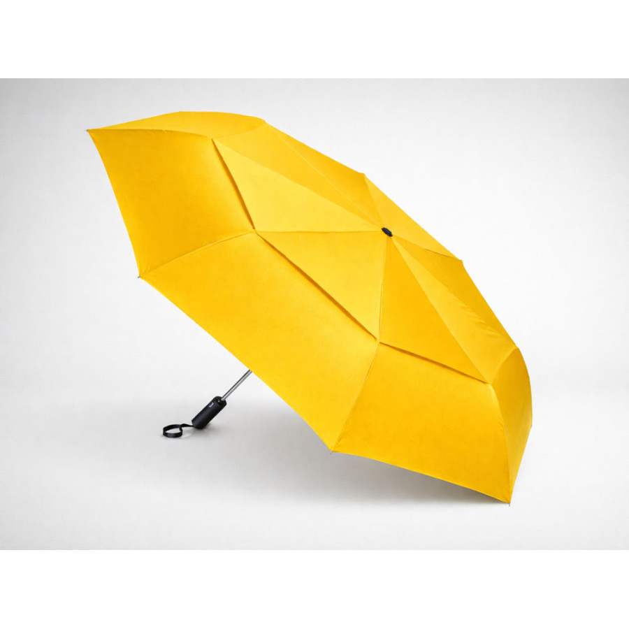 Купол этого складного зонта-автомата состоит из двух полотен и имеет большой диаметр 127 см. Прочный каркас и спицы из стекловолокна устоят при порывах ветра. Благодаря этому зонт служит надежным укрытием в самый сильный дождь. Закрывается в 3 сложения. Ручка обработана мягким покрытием soft-touch. Широкий хлястик для удобства персонализации.
