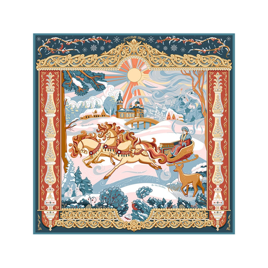 Платок Русская зима воплощает фольклорный образ красавицы-зимы.
