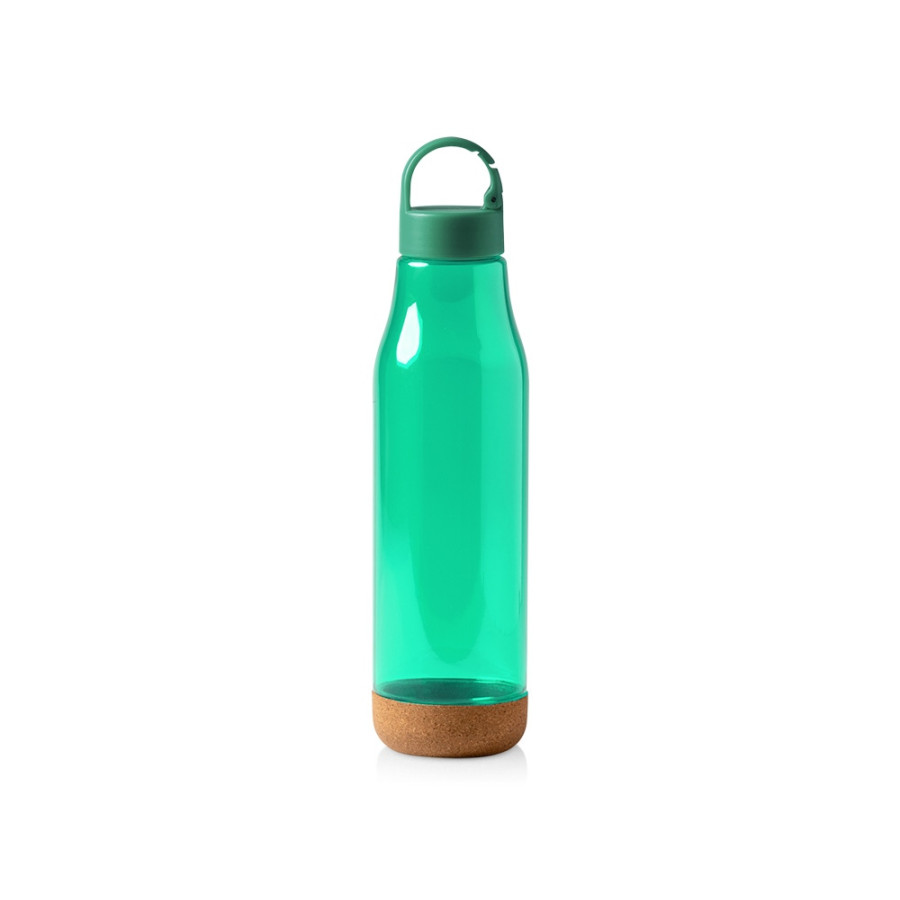 Бутылка с пластиковым корпусом и пробковым дном. Ручка для переноски с карабином на крышке. Объем: 720 мл. Упаковка: эко-дизайн.