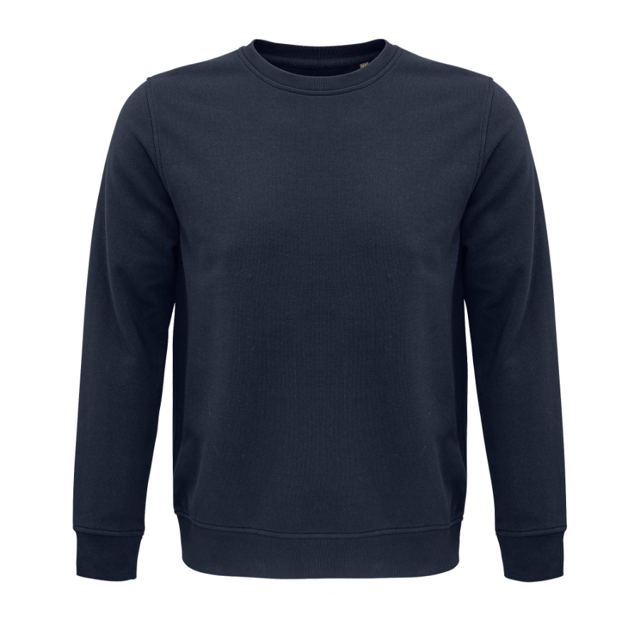 Свитшот унисекс без начеса (петлевой футер) выполнен из 80% органического хлопка и 20% переработанного полиэстера, плотностью 280 г/м2.