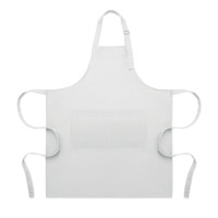 Длинный кухонный фартук из поликоттона 240 г/м² (35% хлопок, 65% полиэстер) с двумя передними карманами и регулируемым ремешком с металлической пряжкой.