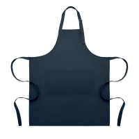 Длинный кухонный фартук из поликоттона 240 г/м² (35% хлопок, 65% полиэстер) с двумя передними карманами и регулируемым ремешком с металлической пряжкой.
