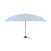 19-дюймовый складной зонт из полиэстера 190T в чехле. Ветроустойчивый каркас из металла и стекловолокна, черная прорезиненная ручка с ремешком на запястье. Компактный размер в сложенном виде 17 см.