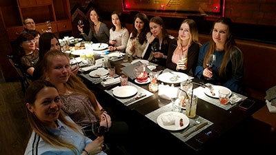 Но не подумайте, что мы только работаем и никогда не отдыхаем. Наш коллектив очень энергичный и (что скрывать) любит вкусно покушать). Мы всегда отмечаем такие праздники, как день рождения нашей компании и 8 Марта (коллектив у нас в основном женский, а мы себя любим!)